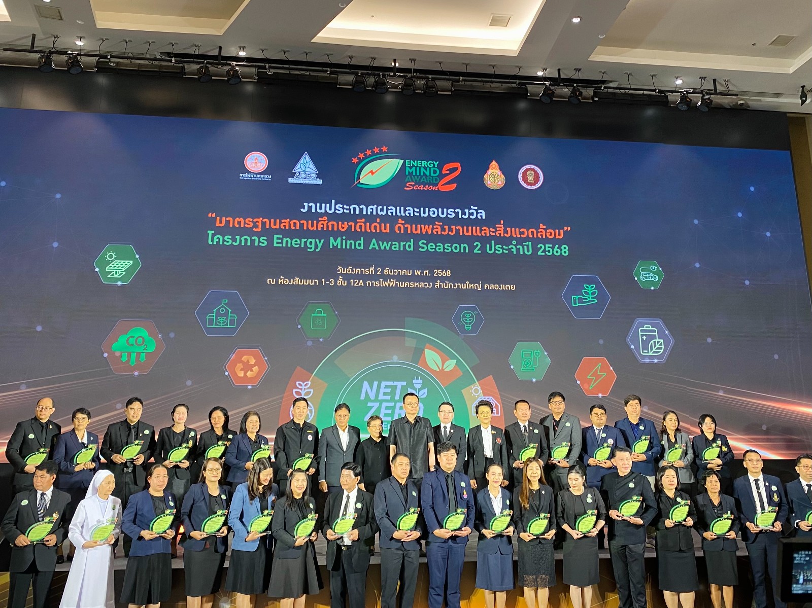 สำหรับงานประกาศผลและมอบรางวัล “มาตรฐานสถานศึกษาดีเด่น ด้านพลังงานและสิ่งแวดล้อม” ในโครงการ Energy Mind Award Season ประจำปี 2568 จัดขึ้นโดย การไฟฟ้านครหลวง โดยมีวัตถุประสงค์เพื่อพัฒนาสถานศึกษาที่เข้าร่วมโครงการฯ ให้ก้าวไปสู่การเป็นสถานศึกษาต้นแบบด้านการอนุรักษ์พลังงานและสิ่งแวดล้อม ทั้งนี้ มีโรงเรียนเอกชนที่ได้รับรางวัลดังกล่าว จำนวน 12 แห่ง ได้แก่ โรงเรียนเซนต์โยเซฟคอนเวนต์ โรงเรียนซางตาครู้สคอนแวนท์ โรงเรียนเซนต์แมรี่ โรงเรียนพระแม่สกลสงเคราะห์ โรงเรียนจินดาพงศ์ โรงเรียนกงลี้จงซัน โรงเรียนไทยคริสเตียน โรงเรียนอัสสัมชัญคอนแวนต์ โรงเรียนอัสสัมชัญศึกษา โรงเรียนอัสสัมชัญ โรงเรียนโสมาภา และโรงเรียนปราโมชวิทยารามอินทรา นอกจากนี้ภายในงานยังมีโรงเรียนเอกชนที่เป็นต้นแบบสถานศึกษาดีเด่น ด้านพลังงานและสิ่งแวดล้อม (สถานศึกษาที่ได้รับการจัดระดับ 5 ดาว (สูงสุด) ประจำปี 2566) มาเข้าร่วมจัดบูธนิทรรศการเพื่อแสดงผลงานของโรงเรียนอีกด้วย