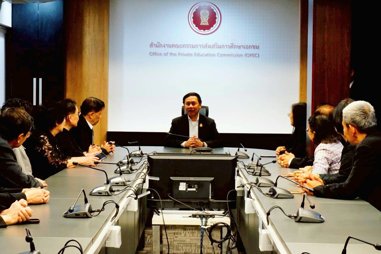 เช้าวันนี้ (29 ธันวาคม 2568) นายมณฑล ภาคสุวรรณ์ เลขาธิการคณะกรรมการส่งเสริมการศึกษาเอกชน (เลขาธิการ กช.) ให้การต้อนรับเครือข่ายสมาคมครูจีนและชมรมสอนภาษาจีนทั้ง 4 หน่วยงาน โดยมี คุณวรรณา ลอเลอเลิศ นายกสมาคมครูจีน (ประเทศไทย) คุณวิโรจน์ เตียวแสงสุข ประธานชมรมโรงเรียนสอนภาษาจีนภาคตะวันออกแห่งประเทศไทย คุณกรุณา เลิศวุฒิภิญโญ ประธานชมรมโรงเรียนสอนภาษาจีนภาคตะวันภาคตะวันออกเฉียงเหนือ คุณสวัฒน์ ตั้งไชยวงศ์ ประธานโรงเรียนคลองเตยวิทยา จากชมรมโรงเรียนภาษาจีนในกรุงเทพมหานคร พร้อมด้วยคณะผู้บริหาร และบุคลากรในหน่วยงาน ที่เข้าพบเพื่ออวยพรและส่งมอบความสุขเนื่องในเทศกาลวันขึ้นปีใหม่ 2569 ณ ห้องประชุมวิเวก ปางพุฒิพงศ์ อาคาร สช. กระทรวงศึกษาธิการ ในโอกาสนี้ เลขาธิการ กช. ได้กล่าวขอบคุณประธานสมาคมและประธานชมรมทุกหน่วยงานที่กรุณาเข้ามาอวยพรและส่งมอบความสุขแก่บุคลากร สช. พร้อมแสดงความชื่นชมต่อความร่วมแรงร่วมใจอันเข้มแข็งของเครือข่ายครูจีนในการขับเคลื่อนและพัฒนาการจัดการเรียนการสอนภาษาจีนให้มีคุณภาพและได้มาตรฐานสากล ทั้งนี้ เลขาธิการ กช. ได้มอบคำอวยพรและความปรารถนาดีเนื่องในโอกาสวันขึ้นปีใหม่ 2569 กลับไปยังผู้บริหาร และบุคลากรของทุกหน่วยงาน ขอให้ทุกท่านประสบความสำเร็จ มีความสุข ความเจริญ และร่วมกันสานต่อพลังความร่วมมือเพื่อยกระดับการศึกษาเอกชนและการเรียนรู้ภาษาจีนของประเทศอย่างยั่งยืนต่อไป