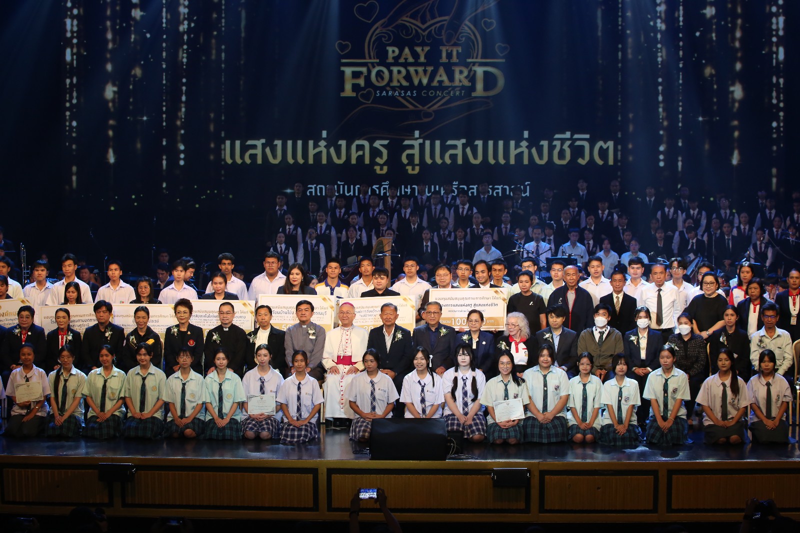 ผชช.สุมิตรา ทองแสง กล่าวถึงงานในครั้งนี้ว่า การจัดงาน “Pay It Forward – แสงแห่งครู สู่แสงแห่งชีวิต” ของสถาบันการศึกษาในเครือสารสาสน์ จัดขึ้นเพื่อเทิดพระเกียรติและน้อมรำลึกถึงพระมหากรุณาธิคุณของ สมเด็จพระนางเจ้าสิริกิติ์ พระบรมราชินีนาถ พระบรมราชชนนีพันปีหลวง ผู้ทรงเป็น “แม่ครูแห่งแผ่นดิน” สืบสานคุณค่าความเป็นครูและปลูกฝังจิตสาธารณะผ่านพลังแห่งดนตรีและศิลปวัฒนธรรมที่ส่งเสริมคุณธรรมและจิตสำนึกที่ดีต่อสังคม พร้อมมอบโอกาสให้เด็กพิการและเด็กด้อยโอกาสจากโรงเรียนต่าง ๆ ได้รับความสุขและพลังใจผ่านเสียงดนตรีและภาพยนตร์สั้น โดยมุ่งหวังให้ดนตรีเป็นสื่อกลางในการหล่อหลอมคุณธรรม จริยธรรม และจิตอาสา เปิดพื้นที่แห่งความสุขและกำลังใจแก่เด็กและเยาวชนจากหลากหลายโรงเรียน รวมทั้งเป็นเวทีแห่งการรวมพลังของครู นักเรียน และภาคีเครือข่ายทางการศึกษาในการสร้างสังคมแห่งการให้ เพื่อร่วมจุดประกาย “แสงแห่งครู” ให้ส่องสว่างเป็น “แสงแห่งชีวิต” แก่สังคมไทยอย่างงดงามและยั่งยืนต่อไป