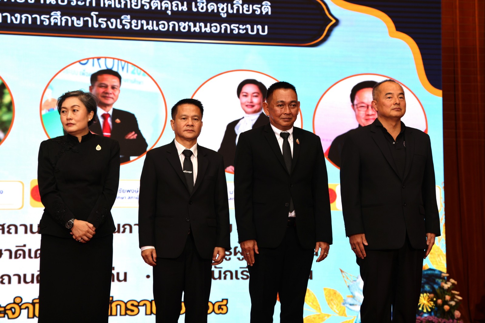 บ่ายวันนี้ (1 พฤศจิกายน 2568) เวลา 14.00 น. สำนักงานคณะกรรมการส่งเสริมการศึกษาเอกชน ร่วมกับ สมาคมโรงเรียนเอกชนนอกระบบ (ประเทศไทย) และเครือข่ายสมาคมโรงเรียนเอกชนนอกระบบ ทั่วประเทศ ดำเนินการจัดงานประกาศเกียรติคุณ เชิดชูเกียรติ บุคลากรทางการศึกษา โรงเรียนเอกชนนอกระบบ ประจำปี 2568 โดยมี ดร.เทอดชาติ ชัยพงษ์ รองประธานกรรมาธิการการศึกษา สภาผู้แทนราษฎร เป็นประธานในงาน พร้อมด้วย ดร.สฤษดิ์ บุตรเนียร ประธานกรรมาธิการการศึกษา สภาผู้แทนราษฎร นายคมกฤช จันทร์ขจร รองเลขาธิการ กช. นางสาวจุลลดา มีจุล ผู้อำนวยการสถาบันคุณวุฒิวิชาชีพ นายพรชัย พิศาลสิษฐ์กุล นายกสมาคมโรงเรียนเอกชนนอกระบบ (ประเทศไทย) ร่วมเป็นเกียรติภายในงานฯ รวมถึง ผู้รับใบอนุญาต ผู้บริหาร ครู ผู้สอน นักเรียน และผู้เรียน เข้าร่วมในพิธี ณ หอประชุมคุรุสภา กระทรวงศึกษาธิการ กรุงเทพมหานคร และก่อนพิธีฯ ได้มีกิจกรรมการถวายความอาลัยแด่สมเด็จพระนางเจ้าสิริกิติ์ พระบรมราชินีนาถ พระบรมราชชนนีพันปีหลวง เพื่อน้อมรำลึกในพระมหากรุณาธิคุณอันหาที่สุดมิได้