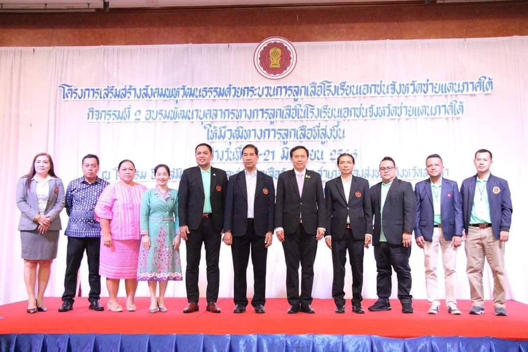 ดร.บุศรินทร์ นาคอุบล ผู้อำนวยการสำนักงานการศึกษาเอกชนจังหวัดสตูล มอบหมายให้นายกอเด็ม หมีนเหม บุคลากรสำนักงานการศึกษาเอกชนจ.สตูล ร่วมโครงการสร้างสังคมพหุวัฒนธรรมด้วยกระบวนการลูกเสือในโรงเรียนเอกชนจังหวัดชายแดนใต้กิจกรรมที่ ๒ อบรมพัฒนาบุคลากรทางทางการลูกเสือในโรงเรียนเอกชนจังหวัดชายแดนใต้ ระหว่างวันที่ ๑๗ - ๒๑ มิถุนายน ๒๕๖๖