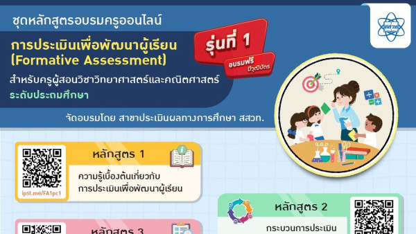 ประชาสัมพันธ์ชุดหลักสูตรอบรมครูออนไลน์ การประเมินเพื่อพัฒนาผู้เรียน (Formative Assessment) สำหรับครูผู้สอนวิชาวิทยาศาสตร...