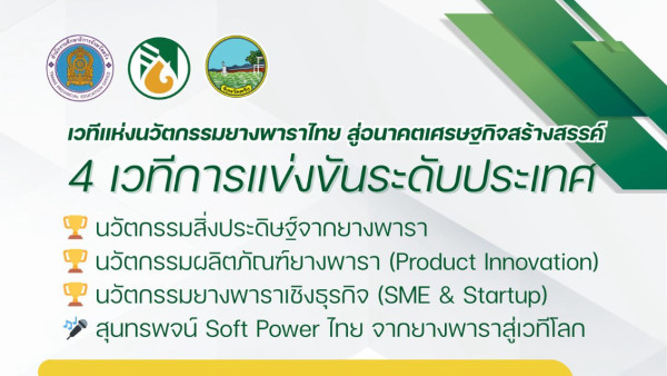 ขอเชิญนักเรียน นักศึกษา และผู้ประกอบการ ส่งผลงานเข้าร่วมการประกวดเวทีประชันไอเดีย นวัตกรรมยางพารา สุดยิ่งใหญ่ ประจำปี 25...
