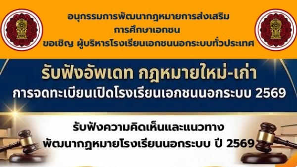 ขอเชิญผู้บริหารโรงเรียนเอกชนนอกระบบทั่วประเทศ! เข้าร่วมการเสวนาออนไลน์ผ่าน Zoom ในหัวข้อ: "อัพเดท กฎหมายใหม่-เก่า การจด...