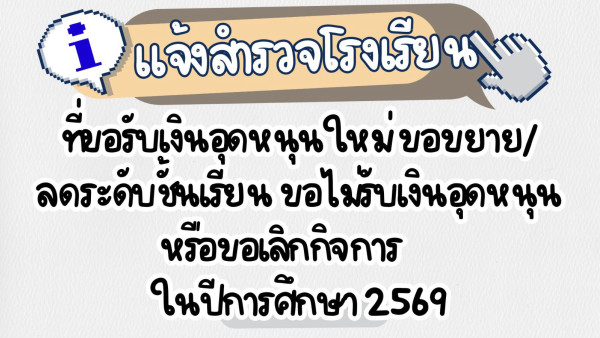 แจ้งสำรวจโรงเรียนที่ขอรับเงินอุดหนุนใหม่ ขอขยาย/ลดระดับชั้นเรียน ขอไม่รับเงินอุดหนุน หรือขอเลิกกิจการ ในปีการศึกษา 2569