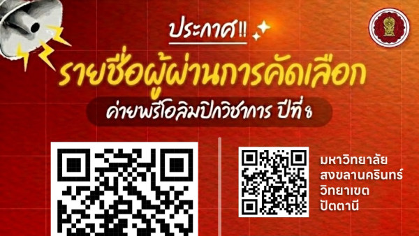 ประกาศรายชื่อนักเรียนที่ “ผ่านการคัดเลือก” เข้าค่ายโครงการพรีโอลิมปิกวิชาการนักเรียนในพื้นที่จังหวัดชายแดนภาคใต้ ปีที่ 8...
