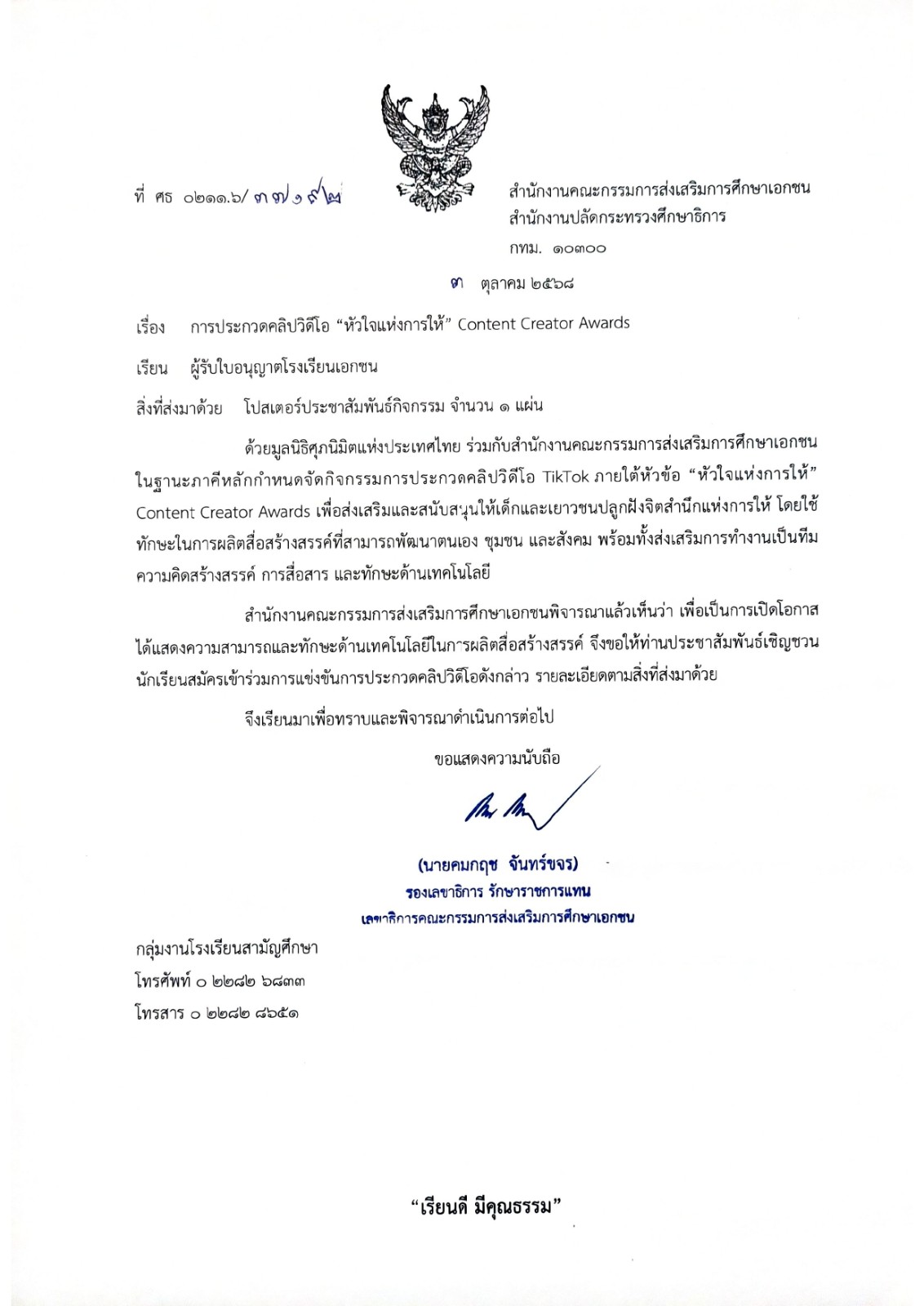 ร่วมส่งคลิปสั้น TikTok ในหัวข้อ "หัวใจแห่งการให้"