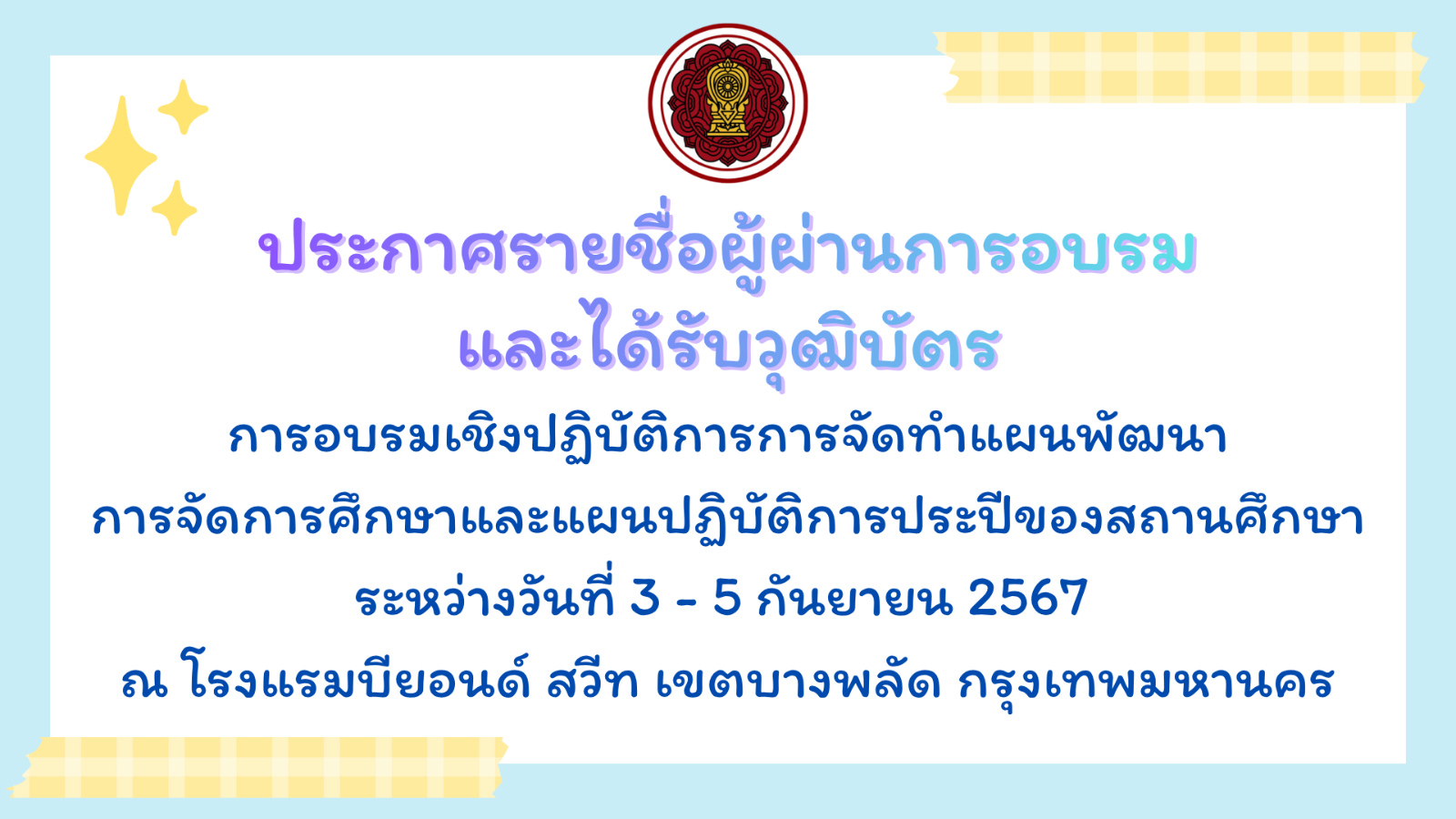 ประกาศรายชื่อผู้ผ่านการอบรมและได้รับวุฒิบัตร
