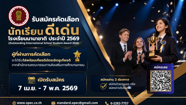 รับสมัครคัดเลือกนักเรียนดีเด่นโรงเรียนนานาชาติ ประจำปี 2569 (Outstanding International School Student Award 2026)
