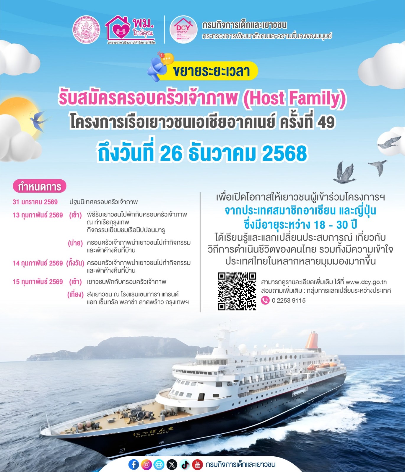 ประกาศขยายระยะเวลารับสมัครครอบครัวเจ้าภาพ (Host Family)