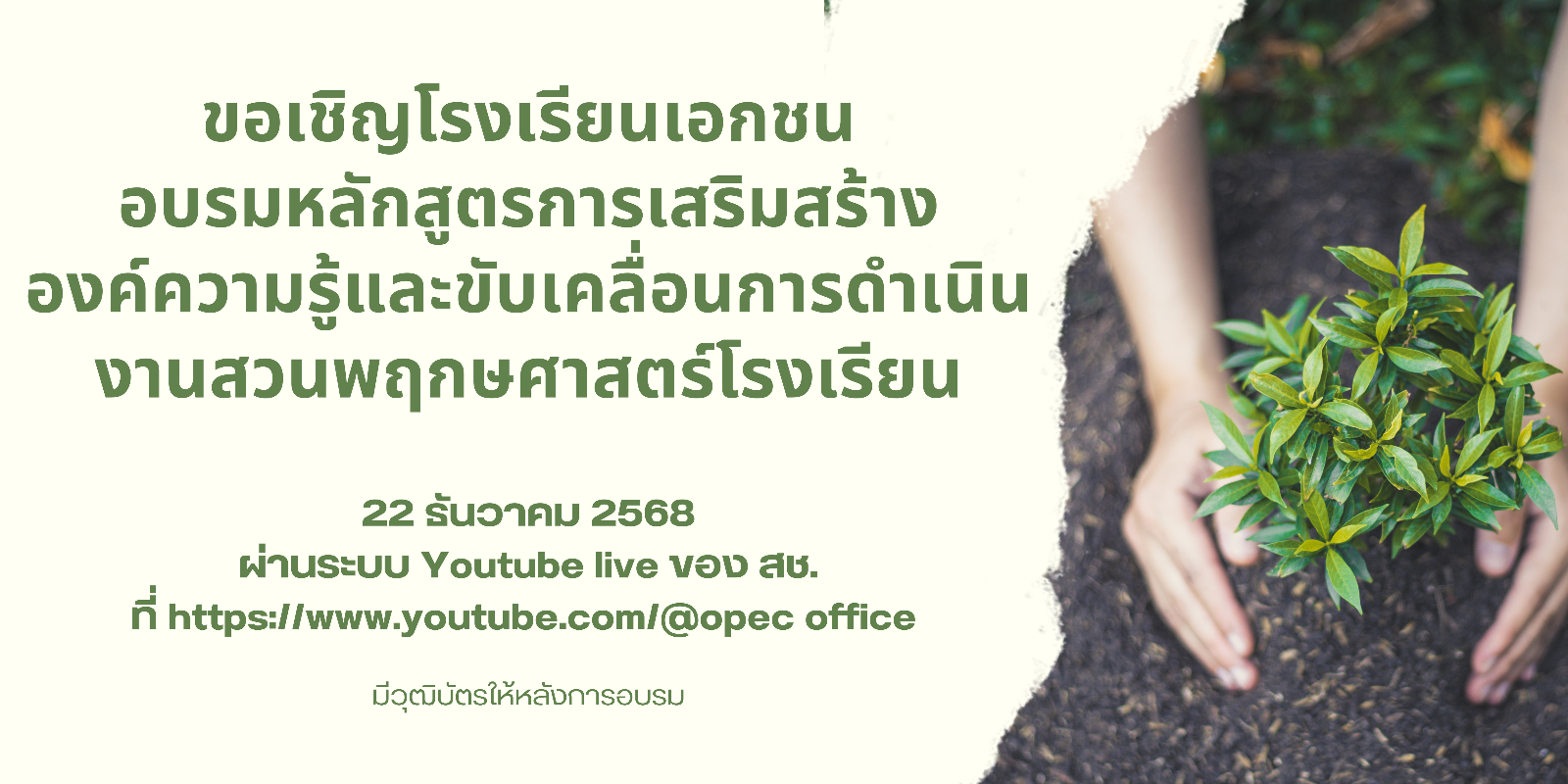 ในการนี้ สำนักงานคณะกรรมการส่งเสริมการศึกษาเอกชน ได้กำหนดจัดการอบรมหลักสูตรการเสริมสร้างองค์ความรู้และขับเคลื่อนการดำเนินงานสวนพฤกษศาสตร์โรงเรียน ผ่านระบบออนไลน์ ในวันที่ 22 ธันวาคม 2568 มีวัตถุประสงค์เพื่อสร้างความรู้ ความเข้าใจในการนำหลักการและแนวคิดเรื่องการอนุรักษ์ ฟื้นฟู และใช้ประโยชน์ทรัพยากรพันธุกรรมพืชมาบูรณาการในกระบวนการเรียนการสอน สร้างการเรียนรู้เชิงอนุรักษ์ให้แก่ผู้เรียน มีการตระหนักถึงความสำคัญของความหลากหลายทางชีวภาพ เห็นคุณค่าและภูมิปัญญาท้องถิ่นตลอดจนมีส่วนร่วมในการสืบสานแนวพระราชดำริ เพื่อการพัฒนาอย่างสมดุลและยั่งยืน โดยสามารถเข้ารับการอบรมผ่านระบบ Youtube live ของสำนักงานคณะกรรมการส่งเสริมการศึกษาเอกชน ได้ที่ https://www.youtube.com/@opecoffice หรือศึกษาข้อมูลการดำเนินงานสวนพฤกษศาสตร์โรงเรียนผ่านคู่มือการดำเนินงานสวนพฤกษศาสตร์โรงเรียนสามารถดาวน์โหลดได้ที่ https://www.rspg.or.th/botanical_school/instruction_2560/pdf/7_0000.pdf หรือ QR Code แนบท้ายนี้