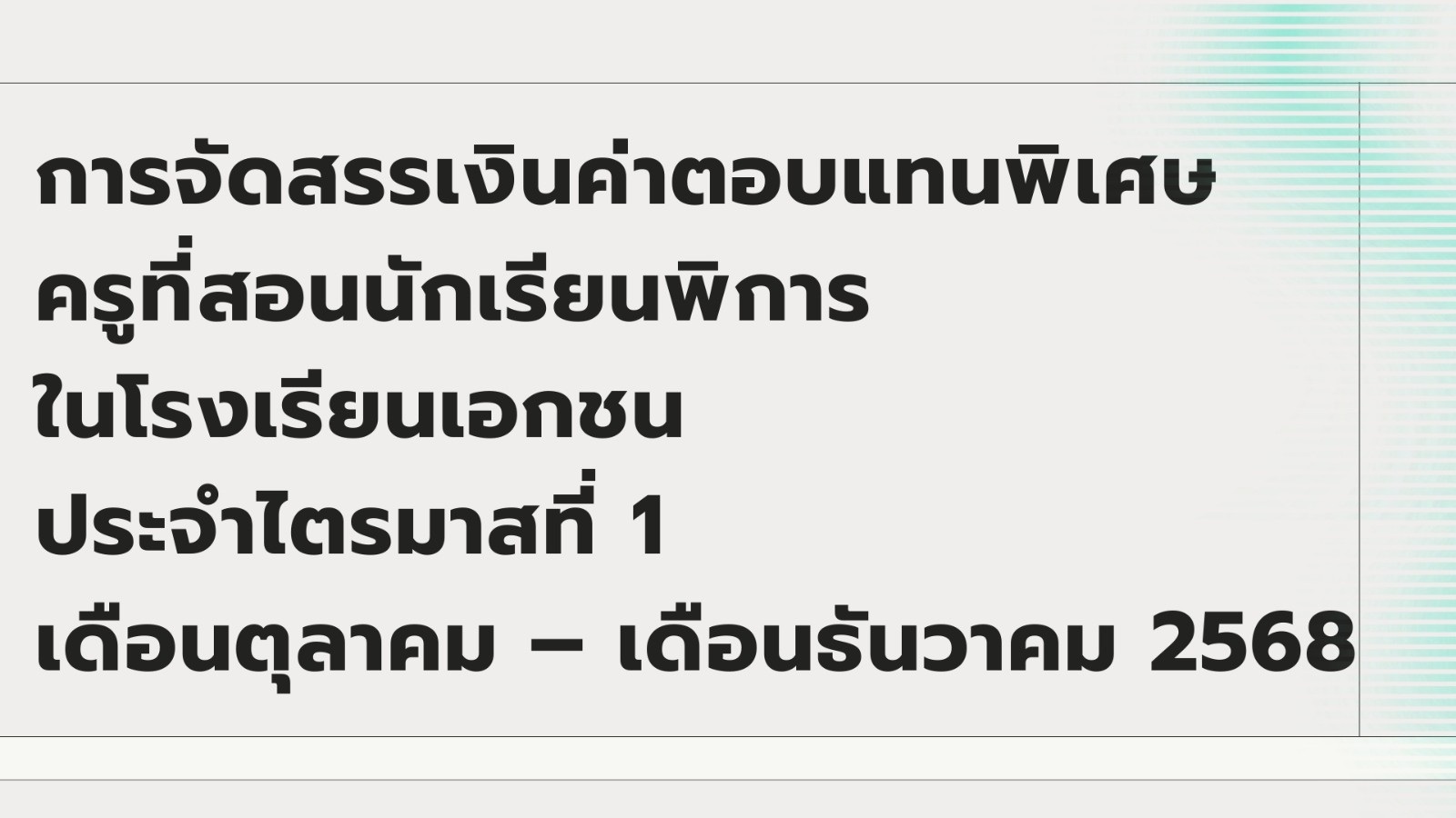 เรื่อง การจัดสรรเงินค่าตอบแทนพิเศษครูที่สอนนักเรียนพิการในโรงเรียนเอกชน ประจำไตรมาสที่ 1 เดือนตุลาคม – เดือนธันวาคม 2568
