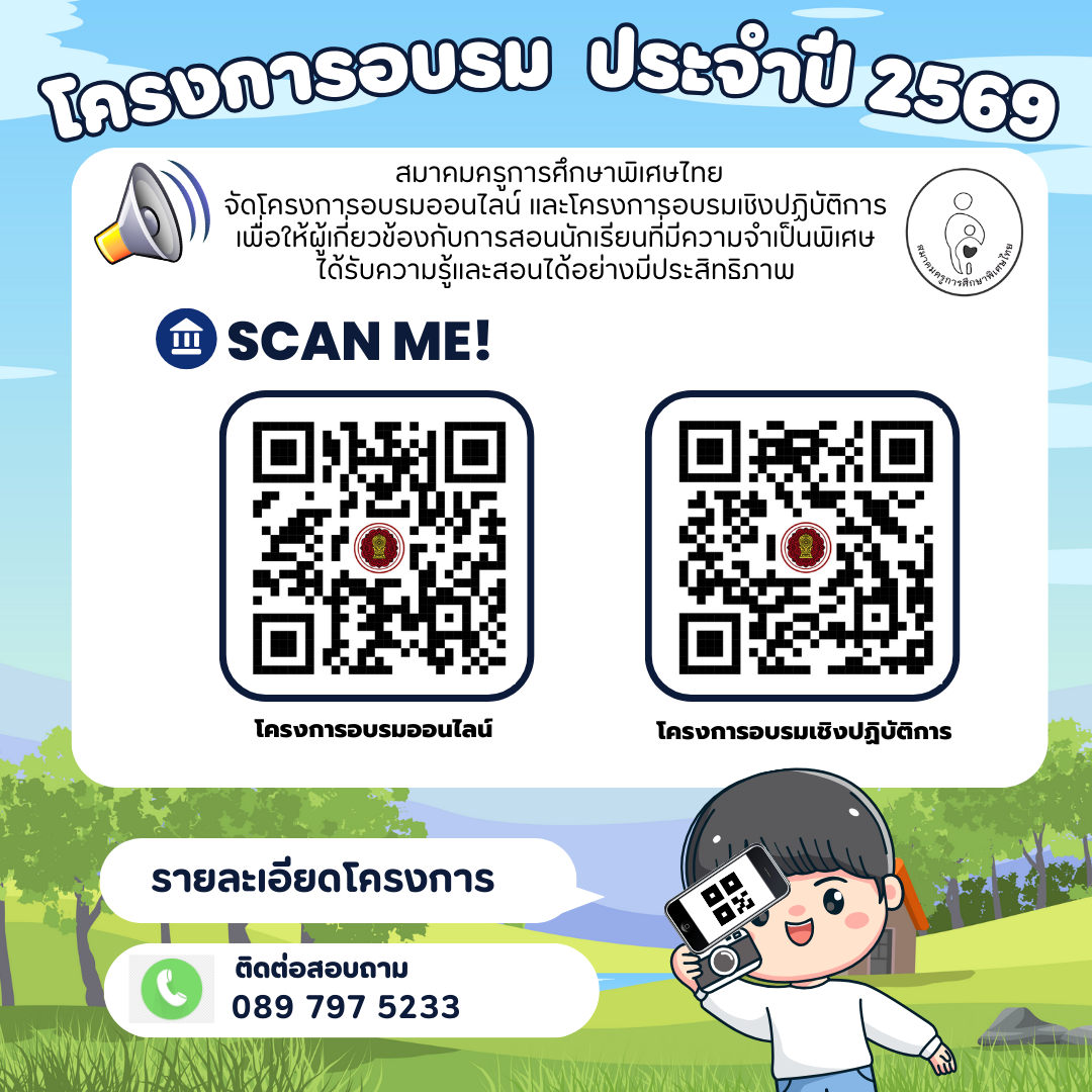 ผู้สนใจสมัครเข้าร่วมโครงการสามารถดาวน์โหลดกำหนดการอบรมประจำปี 2569 ผ่าน QR Code หรือติดต่อสมาคมฯ ได้ที่หมายเลขโทรศัพท์ 089 797 5233