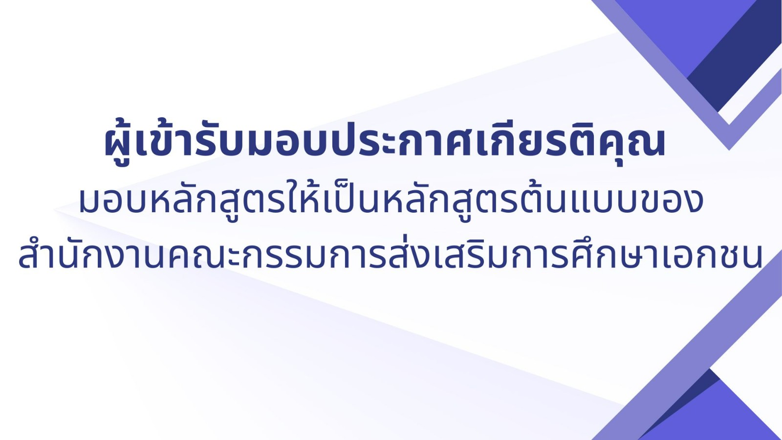 ผู้เข้ารับมอบประกาศเกียรติคุณ มอบหลักสูตรให้เป็นหลักสูตรต้นแบบของ สช.