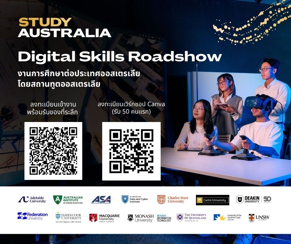 ภายในงานนอกจากจะได้พูดคุยตัวต่อตัวกับเจ้าหน้าที่มหาวิทยาลัยและสถาบันการศึกษาต่างๆแล้ว ยังมีสัมมนาหัวข้อต่างๆ รวมทั้ง workshop จาก Canva (สตาร์ทอัพระดับโลกจากประเทศออสเตรเลีย), สถาบัน HEX และมหาวิทยาลัยออสเตรเลียอีกด้วย โดยผู้สนใจสามารถลงทะเบียนเข้างานล่วงหน้าได้ที่ btips://shorturl.at/LX7Zx หรือศึกษาจากเอกสารแนบ