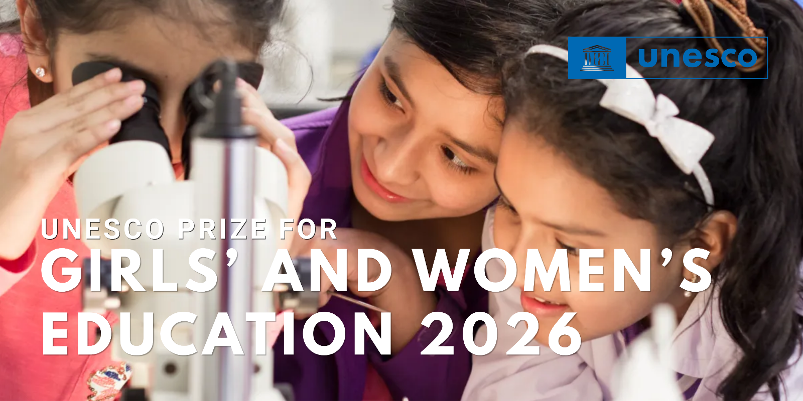 องค์การยูเนสโกร่วมกับรัฐบาลสาธารณรัฐประชาชนจีน ประสงค์มอบรางวัล UNESCO Prize for Girls' and Women's Education ประจำปี พ.ศ. 2569 เพื่อมอบให้กับบุคคลหรือองค์การที่มีผลงานโดดเด่นในการส่งเสริมการศึกษาของเด็กหญิงและสตรี จำนวน 2 รางวัล
