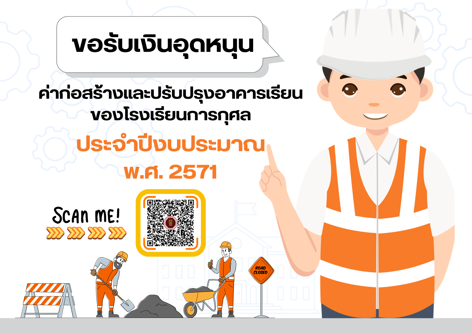 เรื่อง ขอรับเงินอุดหนุนเป็นค่าก่อสร้างและปรับปรุงอาคารเรียนของโรงเรียนการกุศล ประจำปีงบประมาณ พ.ศ. 2571