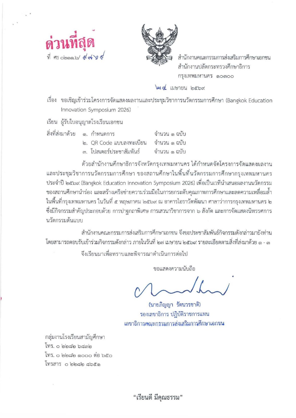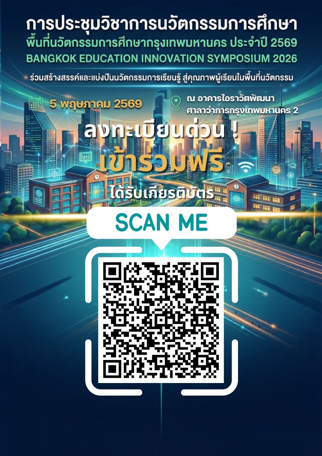 ขอเชิญเข้าร่วมโครงการจัดแสดงผลงานและประชุมวิชาการนวัตกรรมการศึกษา (Bangkok Education Innovation Symposium 2026)