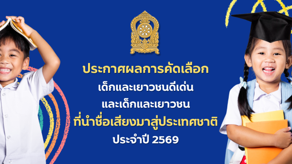 ประกาศผลการคัดเลือกเด็กและเยาวชนดีเด่น เด็กและเยาวชนที่นำชื่อเสียงมาสู่ประเทศชาติ ประจำปี 2569